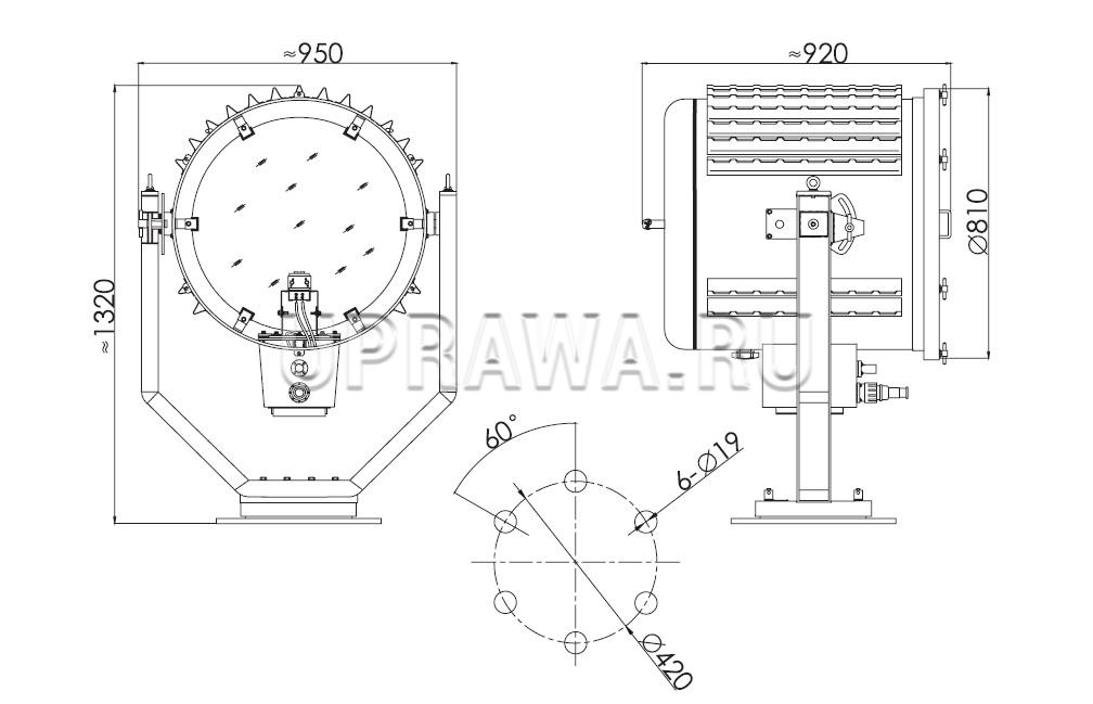 • С-60М1 3000W 110/220V IP56 прожектор судовой сайровый под лампу накаливания