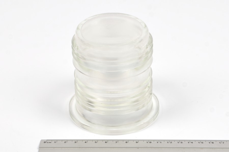 Линза Френеля (стекло, плафон) светопроводящая защитная черт. 372Л.00.02 предназначена для судовых сигнально-отличительных фонарей отечественного производства типа 372.