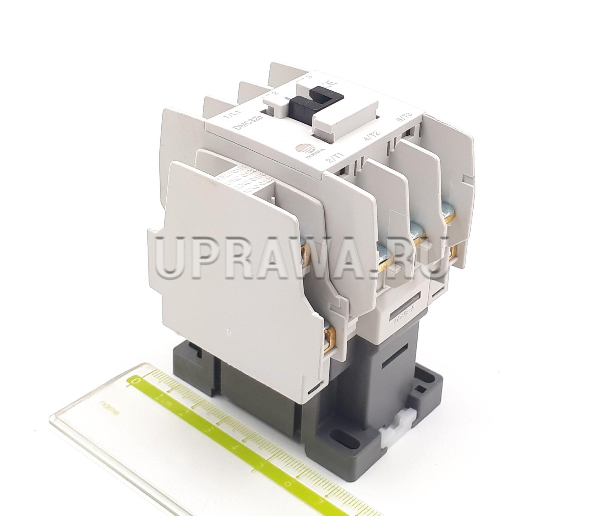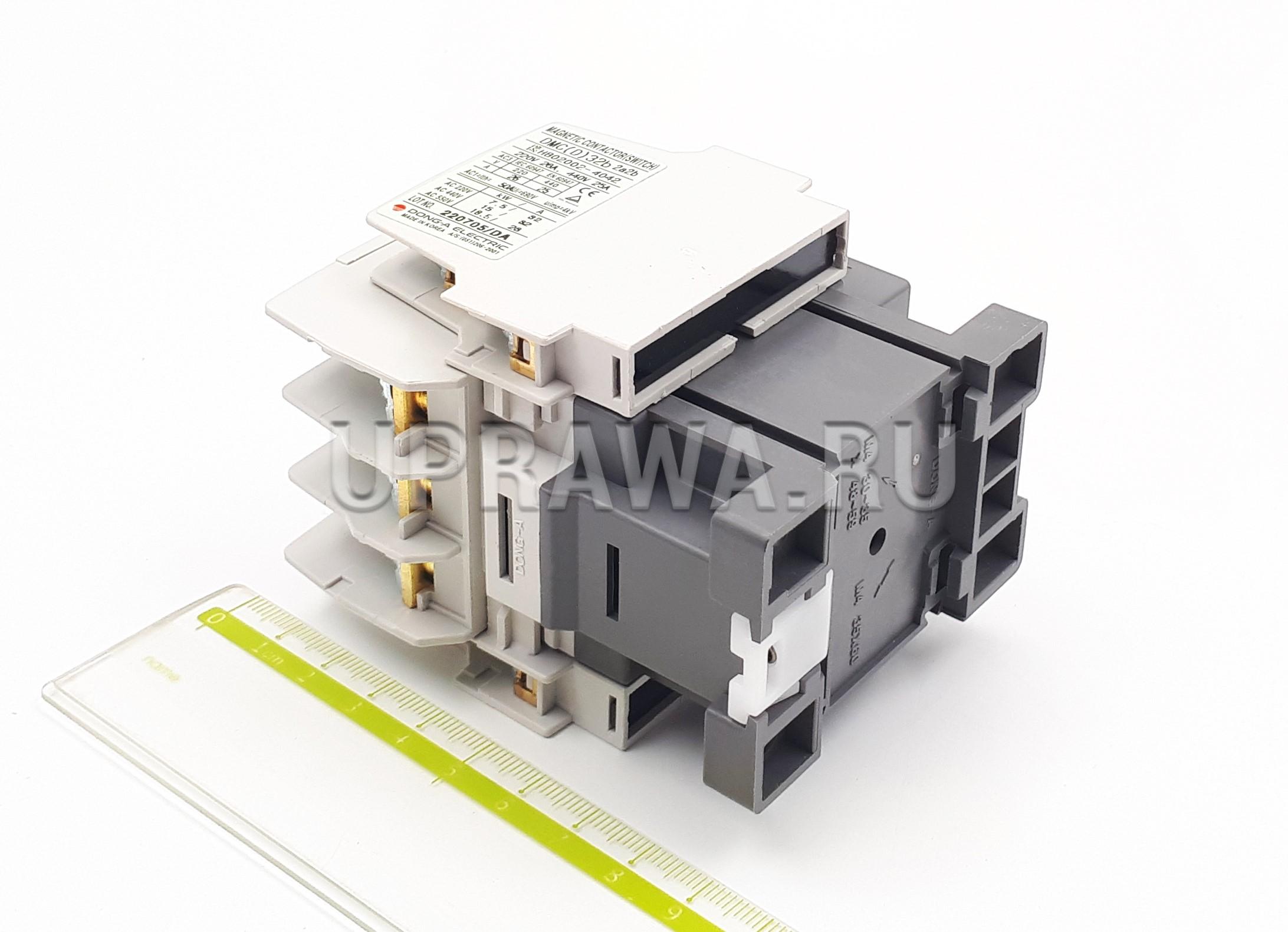 DMC32b 32A 380-440VAC 15kW 380-440V 3P 2NO+2NC Dong-A контактор Type DMC32b аппарат дистанционного действия, предназначенный для частых включений и отключений силовых электрических цепей при нормальных режимах работы. Контактор применяется на судах морского и речного флота, в строительстве и промышленности в различных системах, таких как блоки управления двигателем, системы отопления и вентиляции, кондиционирования воздуха, насосном и грузоподъёмном оборудовании, освещении, системах повышения коэффициента мощности и т. д.
