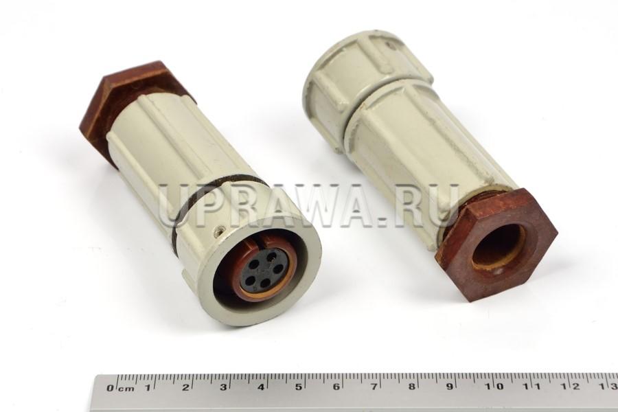 Соединитель водозащищённый тип ШРВ22П5 предназначен для коммутации электрических цепей в судовых системах громкоговорящей связи. В частности применяется для подключения громкоговорителя ГР-1Л в ГГС "Рябина".