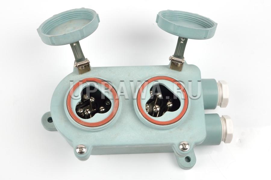 JN-3D 2x2P+E 15A 250V IP56 АМЭО розетка судовая двойная (F8833 watertight 3-pin twin receptacle synthetic resin) предназначена для установки в местах с повышенным влагосодержанием таких как открытые палубы, рыбоперерабатывающие цеха и пр.