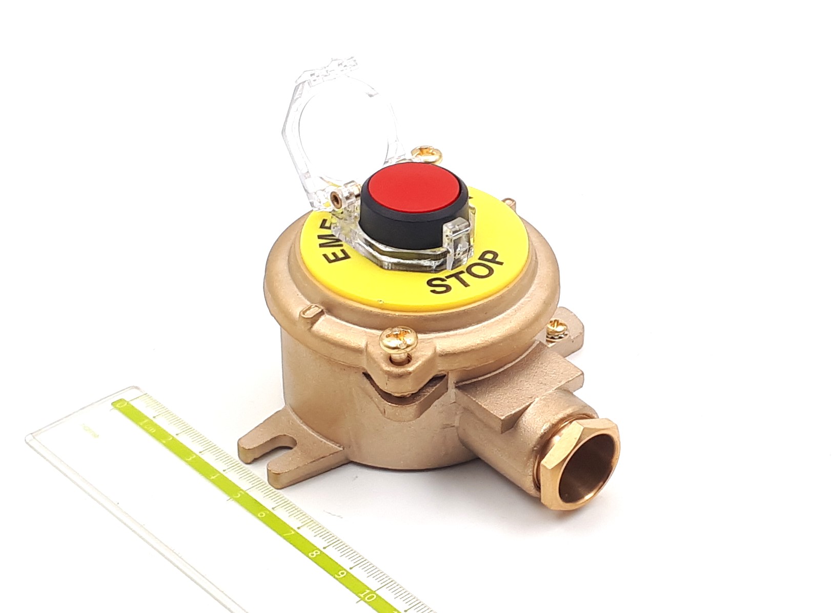 Судовой кнопочный выключатель SB-S для наружной установки выполнен из латуни. Материал корпуса обеспечивает защиту внутреннего механизма от внешних воздействий окружающей среды. Пост кнопочный герметичный SB-S одобрен к применению Российским Морским Регистром Судоходства.Кнопка "СТОП" аварийного отключения герметичная латунная