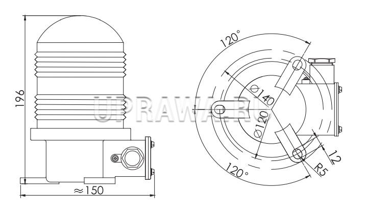 Предупредительный проблесковый огонь FIP1-2 соответствует стандартам- РМРС и РРР. Мощность: 25W. Цоколь лампы: B15d. Степень защиты: IP55.