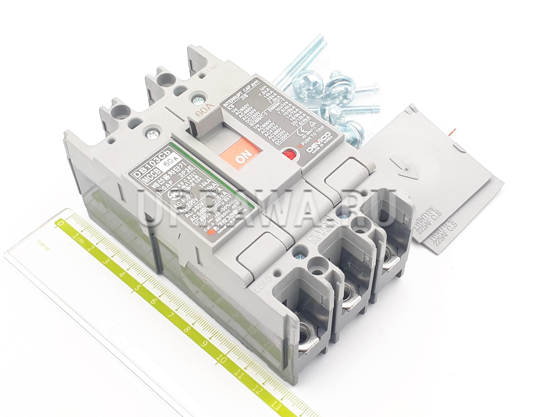 DB103Cb 60A 3P 14kA 460V 50Hz Dong-A выключатель автоматический трехполюсный предназначен для защиты цепей низкого напряжения от перегрузок и коротких замыканий.