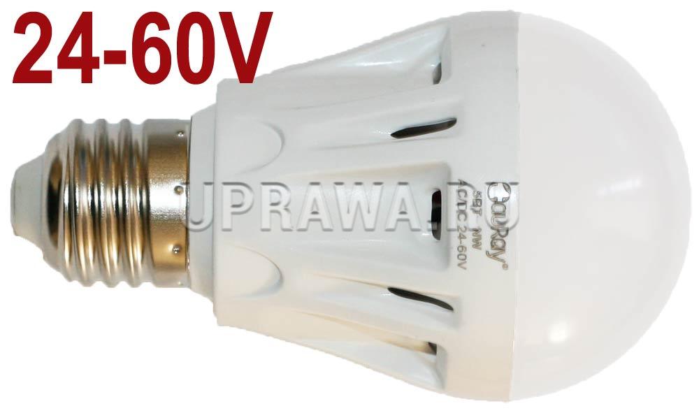 E27 5W 24-60V 4000K BX2-21GN TauRay лампа светодиодная с цоколем Е27 на 24-36-48 V (AC/DC 24-60). Мощность-5W. Цветовая температура-нейтральный белый, 4000К. Напряжение питания -от 24 до 60 V /24, 36, 48/. Тип тока -переменный или постоянный. Светодиодная лампа BX2-21GN не предназначена для бытовой электросети! Она требует источника постоянного или переменного тока с любым напряжением в диапазоне от 24 до 60 V. Назначение светодиодных ламп Е27 на 24-36 V-аварийное освещение, организация рабочих мест на промышленных производствах, освещение строительных ограждений и т. п. Пониженное напряжение, до 24-36 V, используемое для освещения специализированных рабочих мест, обеспечивает дополнительную безопасность для человека. Также подходит для использования в низкоVных (как правило, не выше 36 V) автономных или мобильных источниках питания, таких как системы энергонезависимого дома, катера, яхты.