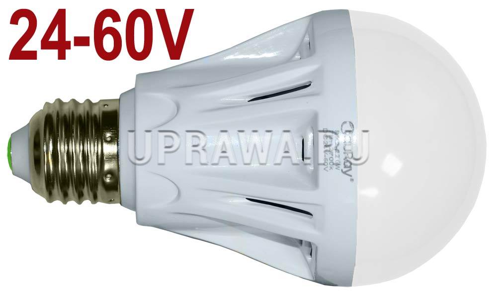 E27 7W 24-60V 2700K BX2-22GW TauRay лампа светодиодная с цоколем Е27 на 24-60 V мощностью 7 W. Цветовая температура-тёплый белый, 2700К. Напряжение питания -от 24 до 60 V /24, 36, 48/. Тип тока -переменный и постоянный. Светодиодная лампа BX2-22GW не предназначена для бытовой электросети! Она требует источника постоянного или переменного тока с напряжением в диапазоне от 24 до 60 VНазначение-аварийное освещение, организация рабочих мест на промышленных производствах, освещение строительных ограждений и т. п. Пониженное напряжение, до 24-36 V, используемое для освещения специализированных рабочих мест, обеспечивает дополнительную безопасность для человека. Также подходит для использования в низкоVных (как правило, не выше 36 V) автономных или мобильных источниках питания, таких как системы энергонезависимого дома, катера, яхты. Преимущества этой лампы:Постоянная яркость во всем диапазоне входных напряжений от 24 V до 60V (24V, 36V, 48V). Тёплый свет даёт возможность её использования в любых бытовых помещениях.