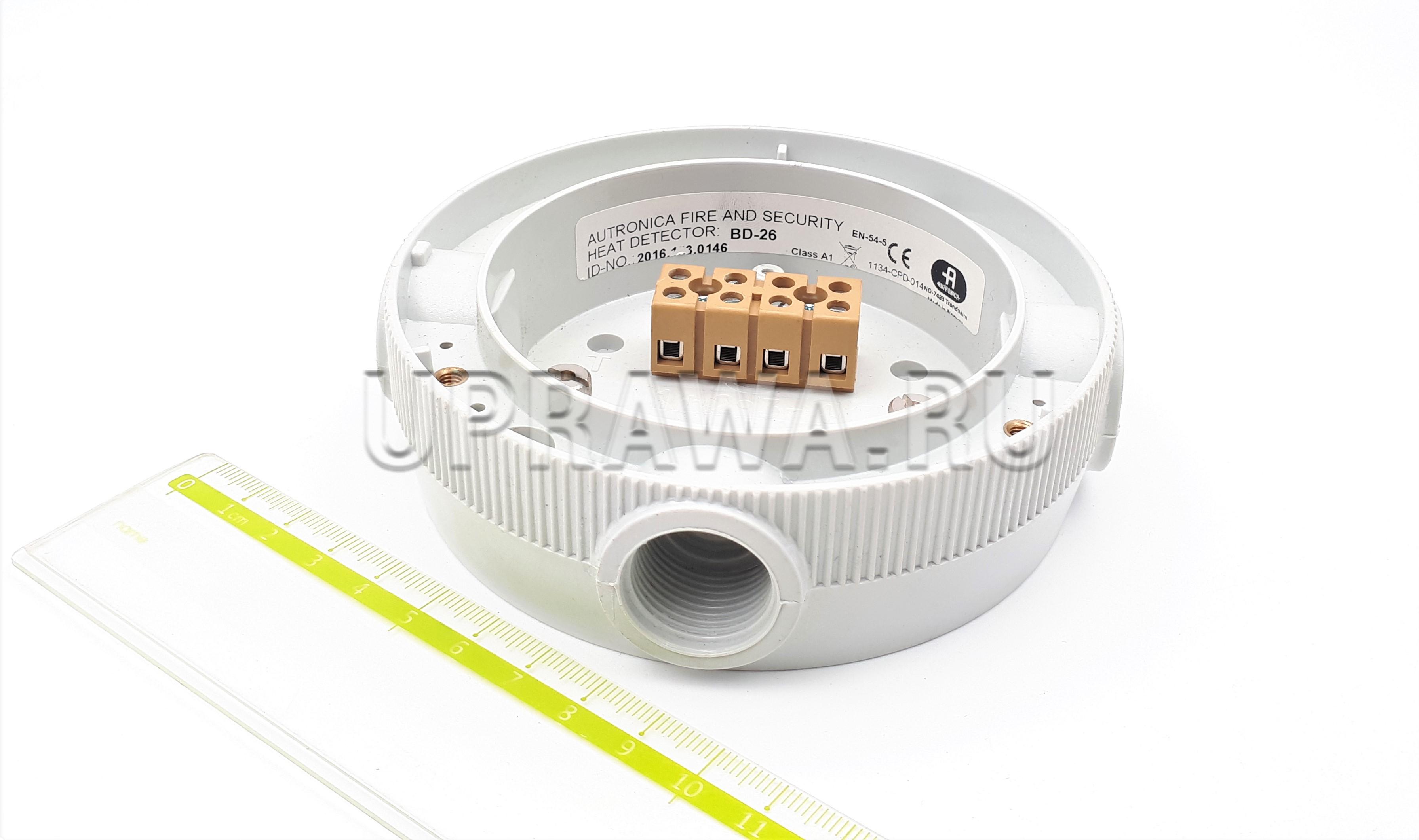 BD-26 Autronica  предназначен для измерение температуры с помощью термистора,  регистрации и считывания температуры в точке установки детектора. Выдает сигнал тревоги при фиксированной температуре, в соответствии с программируемым классом.
