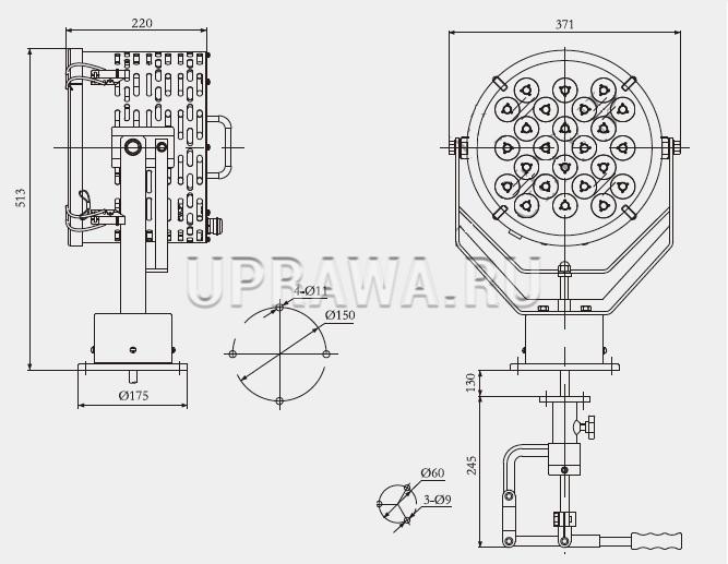 • SSD-150R 150W 230V IP66 АМЭО прожектор светодиодный судовой