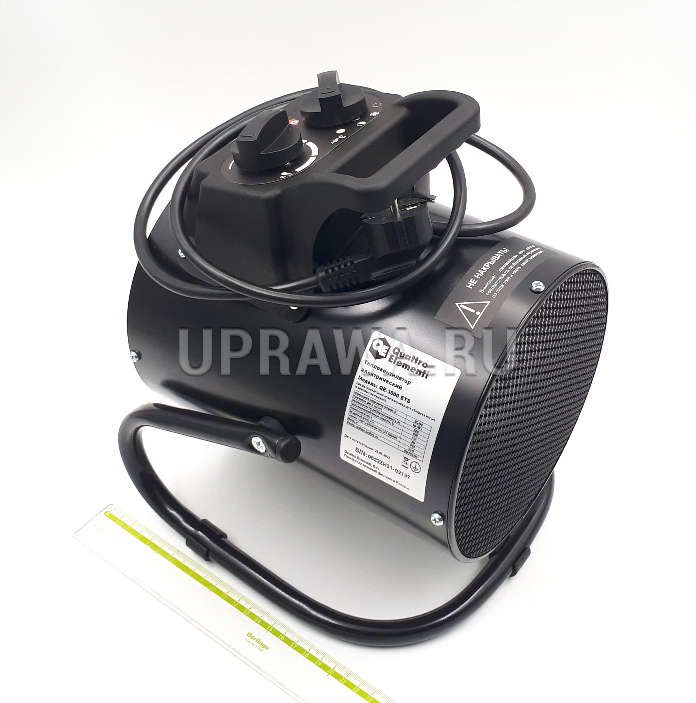 Компактная электрическая пушка мощностью 3 кВт оснащена керамическим нагревательным элементом и предназначена для помещений площадью до 25 кв.м жилого и коммерческого назначения. Нагревательный элемент помещен в прочный металлический корпус, оснащенный удобной ручкой для переноски.