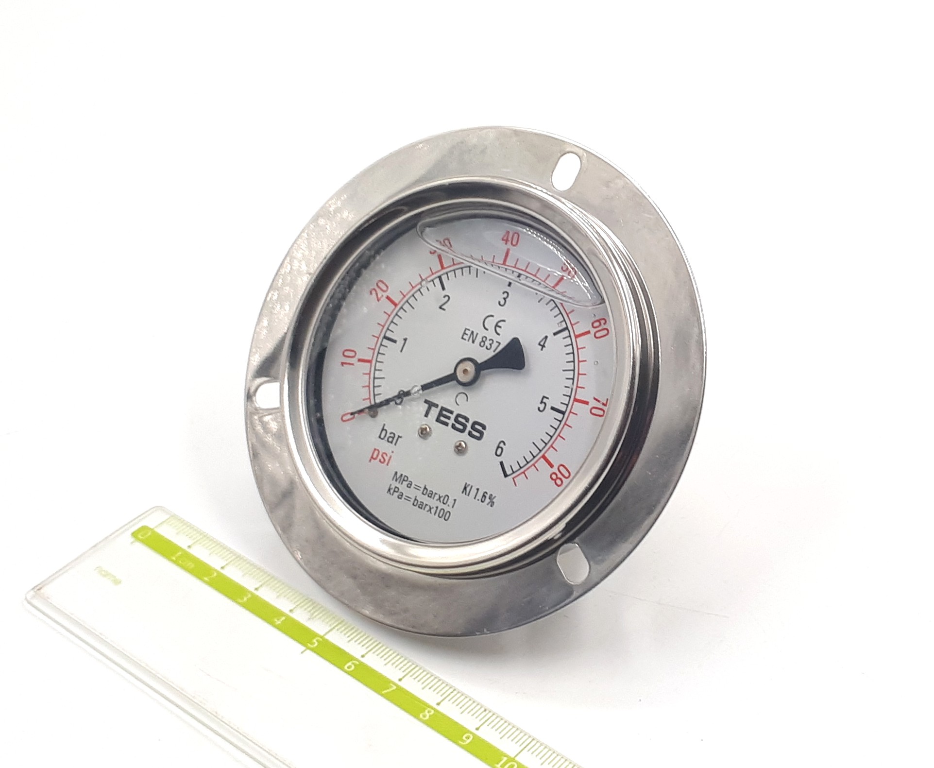 EN837-1 0-6bar 80mm G3/8R Ф TESS манометр виброустойчивый осевой